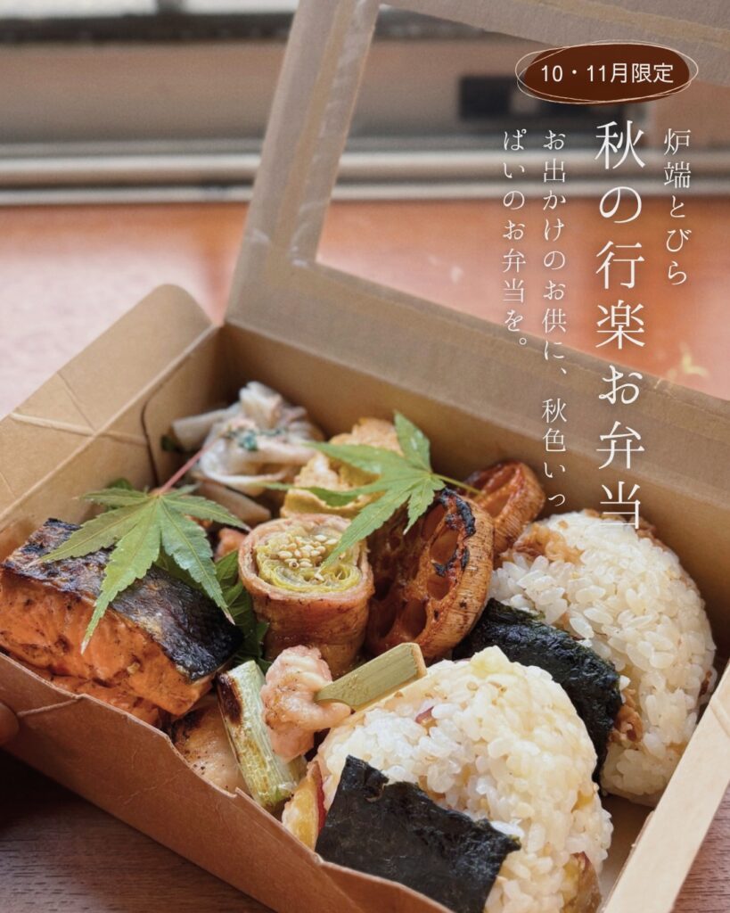 【秋】10月-11月 行楽お弁当 販売。秋の味覚をたっぷり詰め込んだ、外でも楽しめるとびらのお弁当。